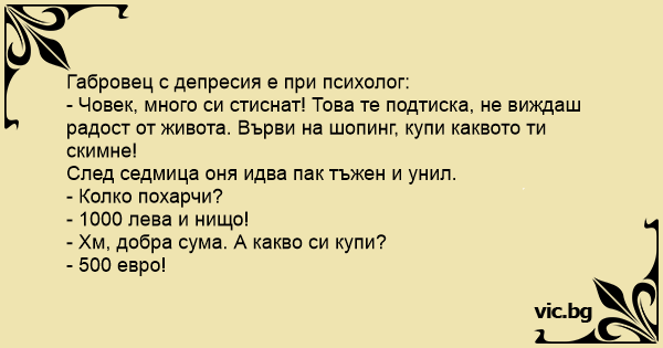 - Човек, много си стиснат! Това те подтиска, не виждаш радост от живота. Върви на шопинг, купи каквото ти скимне!