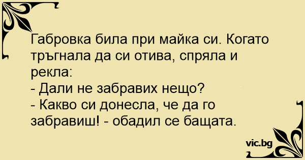 Габровка била при майка си. Когато тръгнала да си отива, спряла и рекла: