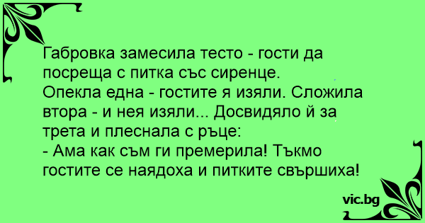 - Ама как съм ги премерила! Тъкмо гостите се наядоха и питките свършиха!