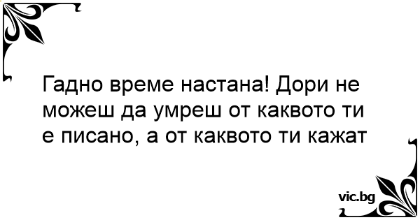 Гадно време настана! Дори не можеш да умреш от каквото ти е писано, а от каквото ти кажат