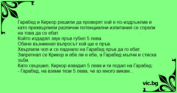 Гарабед и Киркор решили да проверят кой е по-издръжлив и като прехвърлили различни потенциални изпитания се спрели на това да се eбat.