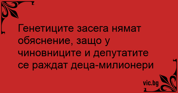 Генетиците засега нямат обяснение, защо у чиновниците и депутатите се раждат деца-милионери
