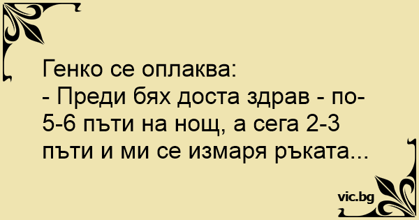 - Преди бях доста здрав - по-5-6 пъти на нощ, а сега 2-3 пъти и ми се измаря ръката...
