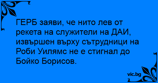 ГЕРБ заяви, че нито лев от рекета на служители на ДАИ, извършен върху сътрудници на Роби Уилямс не е стигнал до Бойко Борисов.
