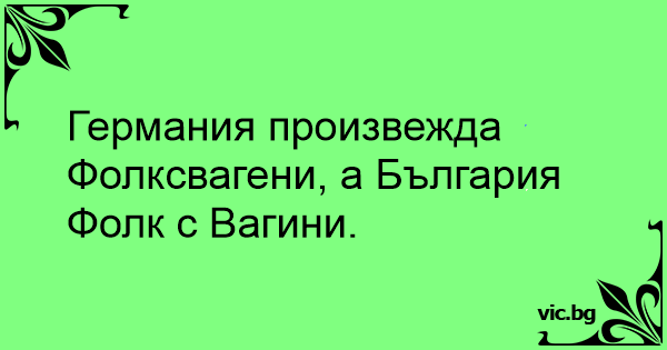 Германия произвежда Фолксвагени, а България Фолк с Вагини.