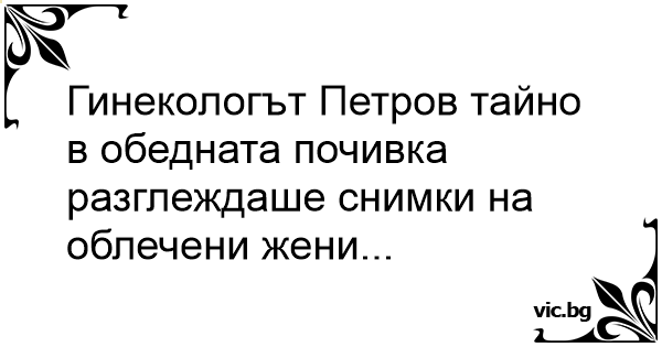 Гинекологът Петров тайно в обедната почивка разглеждаше снимки на облечени жени...