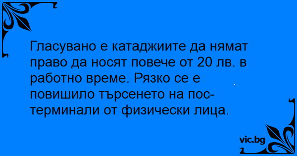 Гласувано е катаджиите да нямат право да носят повече от 20 лв. в работно време. Рязко се е повишило търсенето на пос-терминали от физически лица.