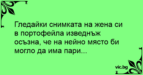 Гледайки снимката на жена си в портофейла изведнъж осъзна, че на нейно място би могло да има пари...