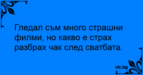 Гледал съм много страшни филми, но какво е страх разбрах чак след сватбата.