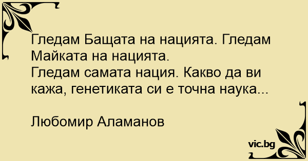 Гледам самата нация. Какво да ви кажа, генетиката си е точна наука...