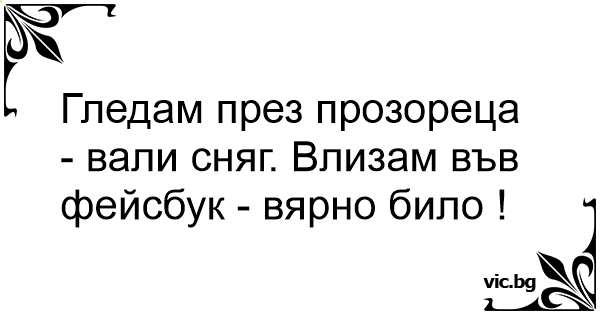 Гледам през прозореца - вали сняг. Влизам във фейсбук - вярно било !