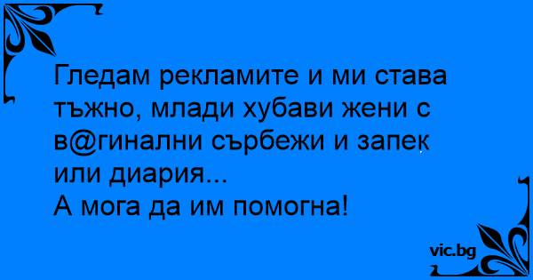 Гледам рекламите и ми става тъжно, млади хубави жени с в@гинални сърбежи и запек или диария...
