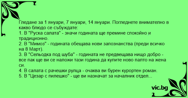 Гледане за 1 януари, 7 януари, 14 януари. Погледнете внимателно в какво блюдо се събуждате: