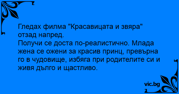 Гледах филма "Красавицата и звяра" отзад напред.
