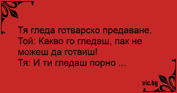 Той: Какво го гледаш, пак не можеш да готвиш!