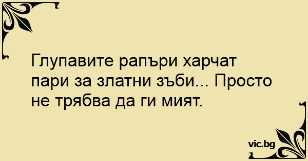 Глупавите рапъри харчат пари за златни зъби... Просто не трябва да ги мият.
