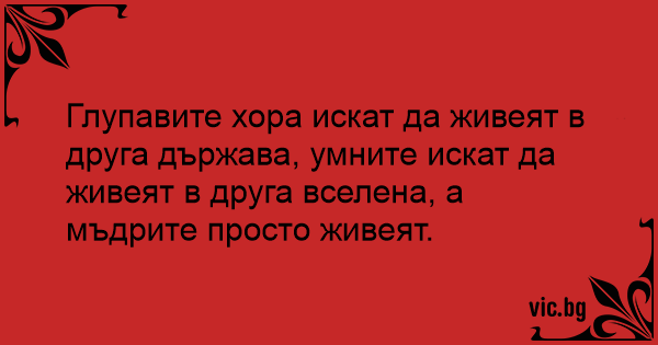 Глупавите хора искат да живеят в друга държава, умните искат да живеят в друга вселена, а мъдрите просто живеят.