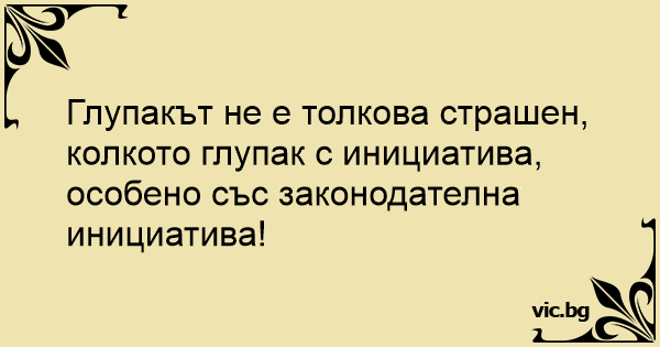 Глупакът не е толкова страшен, колкото глупак с инициатива, особено със законодателна инициатива!