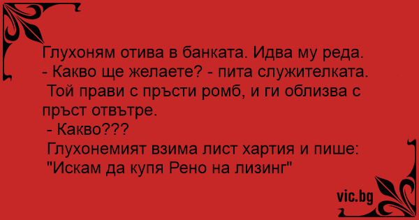 Глухоням отива в банката....