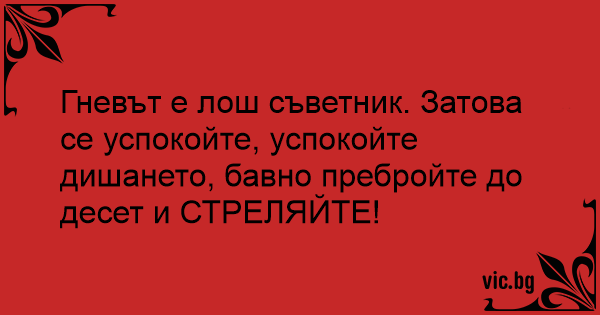 Гневът е лош съветник. Затова се успокойте, успокойте дишането, бавно пребройте до десет и СТРЕЛЯЙТЕ!