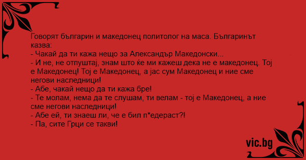 Говорят българин и македонец политолог на маса. Българинът казва: