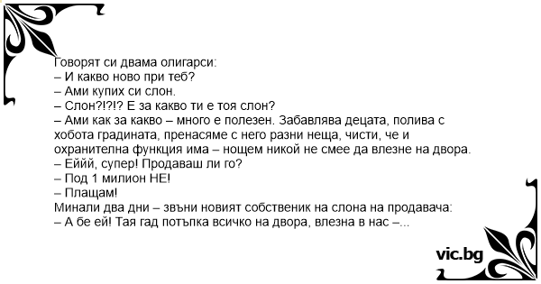 – Слон?!?!? Е за какво ти е тоя слон?