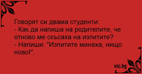 - Напиши: "Изпитите минаха, нищо ново!".