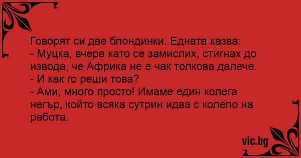 Apu, egyest kaptam az iskolában, mert nem tudtam, hol van Afrika. Te tudod? - Én sem tudom kisfiam, menj, kérdezd meg anyádat! - Anyu, hol van Afrika? - Nem tudom, de nem lehet túl messze! Dolgozik...