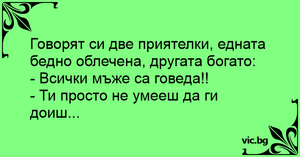 • Вицове от Facebook от нашата страница https://www.facebook.com/www.vic.bg