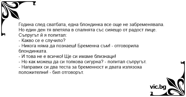 - Направих си два теста за бременност и двата излязоха положителни! - бил отговорът.