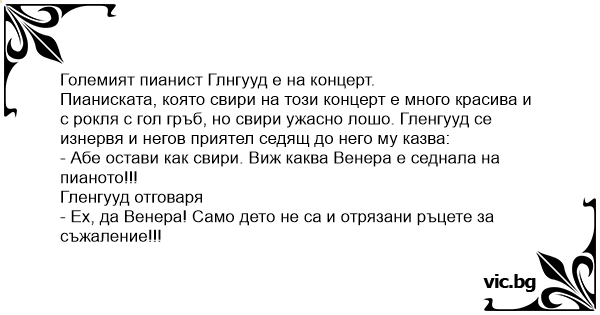 - Абе остави как свири. Виж каква Венера е седнала на пианото!!!