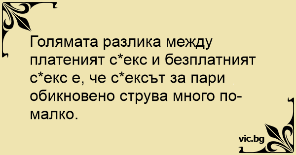 Голямата разлика между платеният cekc и безплатният cekc е, че cekcъt за пари обикновено струва много по-малко.