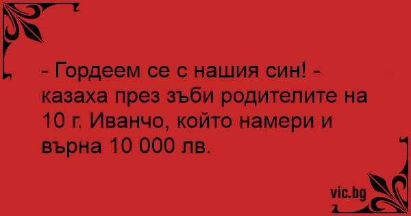 - Гордеем се с нашия син! - казаха през зъби родителите на 10 г. Иванчо, който намери и върна 10 000 лв.