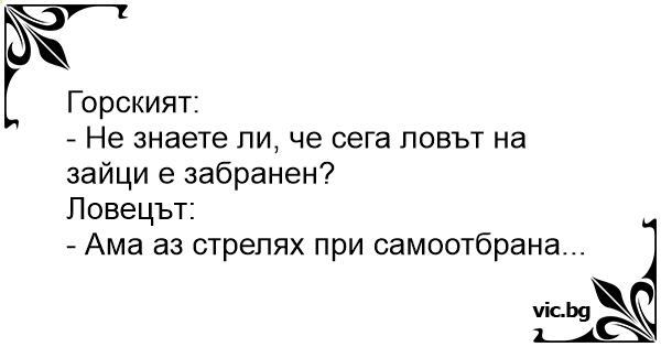 - Не знаете ли, че сега ловът на зайци е забранен?
