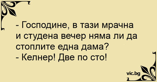 - Господине, в тази мрачна и студена вечер няма ли да стоплите една дама?