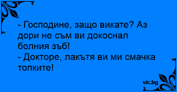 - Господине, защо викате? Аз дори не съм ви докоснал болния зъб!