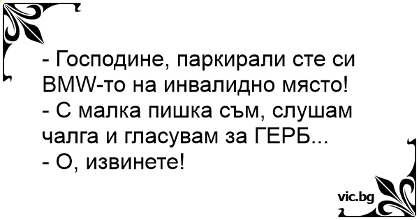- Господине, паркирали сте си BMW-то на инвалидно място!