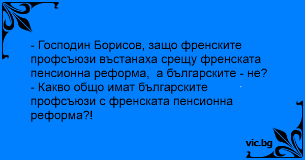 - Господин Борисов, защо френските профсъюзи въстанаха срещу френската пенсионна реформа, а българските - не?