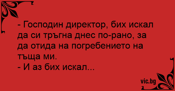 - Господин директор, бих искал да си тръгна днес по-рано, за да отида на погребението на тъща ми.