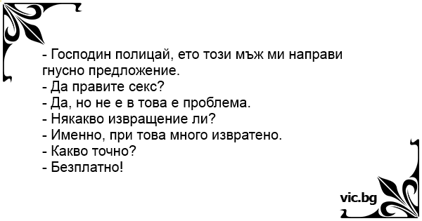 - Господин полицай, ето този мъж ми направи гнусно предложение.