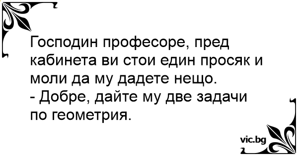 Господин професоре, пред кабинета ви стои един просяк и моли да му дадете нещо.