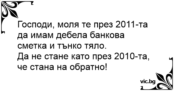 Господи, моля те през 2011-та да имам дебела банкова сметка и тънко тяло.
