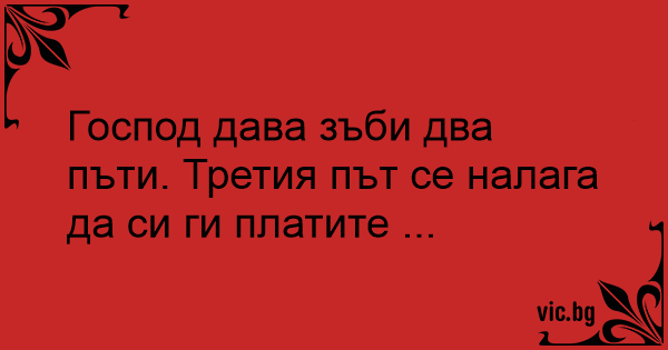 Господ дава зъби два пъти. Третия път се налага да си ги платите ...