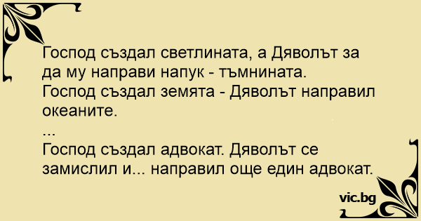 Господ създал адвокат. Дяволът се замислил и... направил още един адвокат.