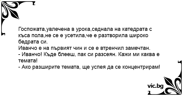 - Иванчо! Къде блееш, пак си разсеян. Кажи ми каква е темата!
