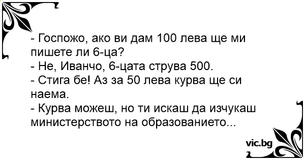 - Госпожо, ако ви дам 100 лева ще ми пишете ли 6-ца?