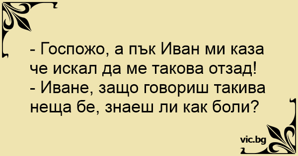 - Госпожо, а пък Иван ми каза че искал да ме такова отзад!