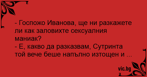 - Госпожо Иванова, ще ни разкажете ли как заловихте сексуалния маниак?