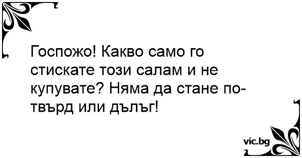 Госпожо! Какво само го стискате този салам и не купувате? Няма да стане по-твърд или дълъг!