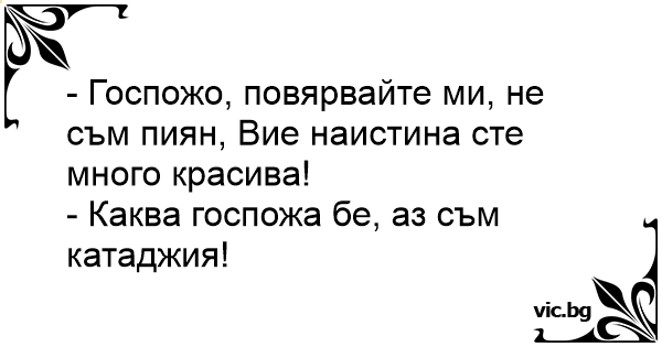 - Госпожо, повярвайте ми, не съм пиян, Вие наистина сте много красива!